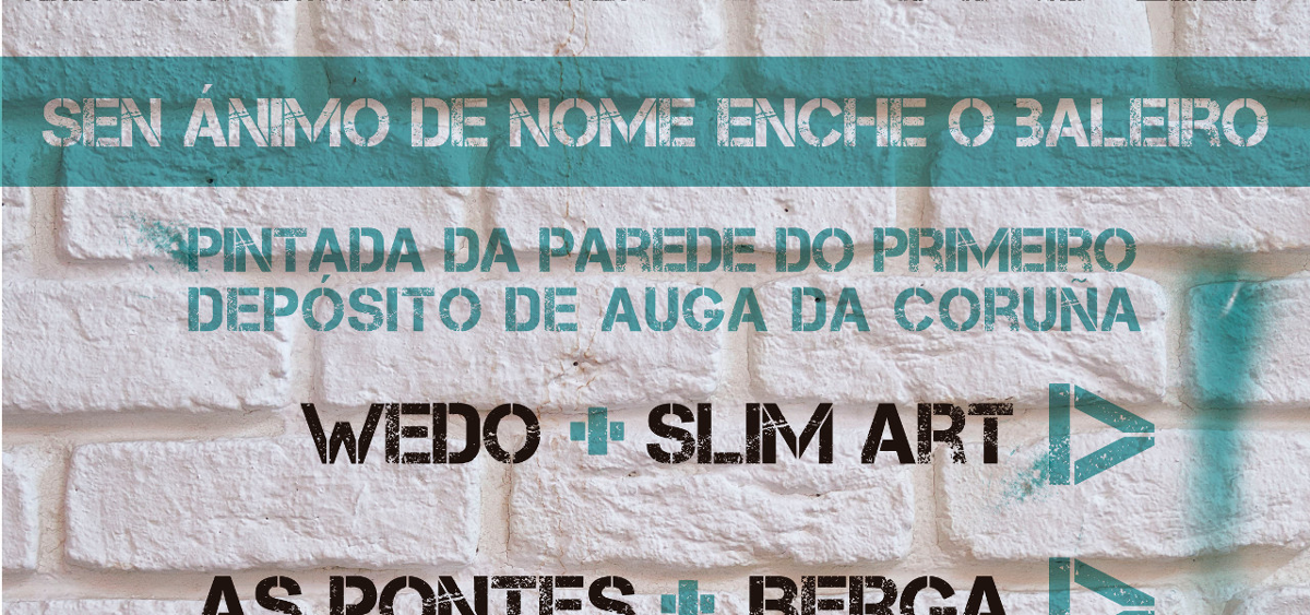 Os artistas urbanos Wedo das Pontes (Galicia) e Slim Art de Berga (Cataluña) colaboran para pintar xuntos a parede do primeiro depósito de auga da Coruña. Depósito que remonta ao ano 1906 (112 anos) e aínda en activo, construíuse seguindo o proxecto de aproveitamento de augas do río Barcés", de 1903. A parede do depósito en cuestión é actualmente propiedade de Emalcsa e está situada na rúa Antonio Santiago, adxacente ao Centro Cívico de Monte Alto.