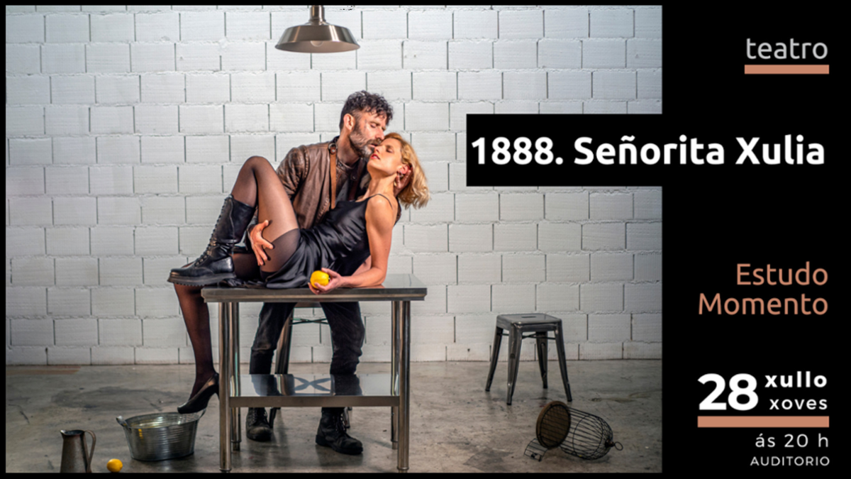 Sinopse: na noite de san Xoán, Xulia decide aproveitar unha ausencia do seu pai, o conde, para organizar unha festa secreta cos criados. Durante a festa, Xulia seduce Xoán, criado predilecto do conde. Os dous amantes caen nun perigoso xogo de paixón, violencia, inocencia e amor. Dúas criaturas brillantes, vítimas do condicionamento social e moral dos seus mundos, tan diferentes... O texto de Strindberg sorprende -e atemoriza- por actual e contundente. É posíbel a igualdade entre home e muller? Entre ricos e pobres? Entre rei e escravo?.