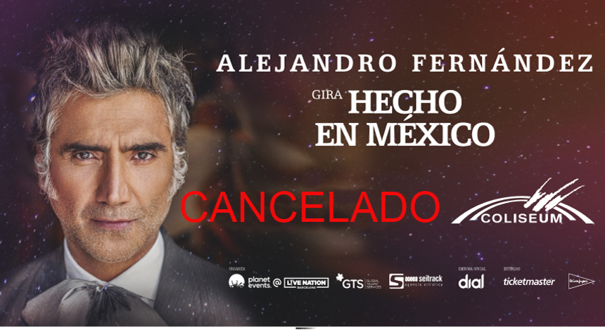 Alejandro Fernández cancela el concierto de A Coruña. Debido a cambios en el calendario de la gira "Hecho en México", los tiempos de las cargas marítimas se ven afectados, por lo que el concierto de Alejandro Fernández, previsto para el 17 de julio en el Coliseum de A Coruña, no puede seguir adelante y queda cancelado. La devolución de las entradas se realizará a partir del 28 de abril y por el mismo método de pago usado en la compra