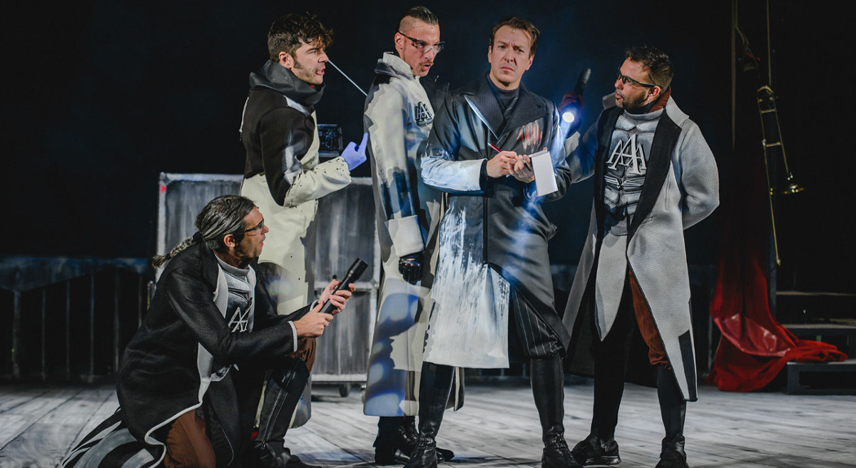 Un homenaje al teatro universal con forma de thriller de género negro, ambientado en un cercano futuro en que las artes están prohibidas y nuestro planeta, convertido en Ciudad Tierra, es liderado por una inteligencia artificial con un ejército de drones. Una investigación contrarreloj en que el asesino podría ser cualquiera.