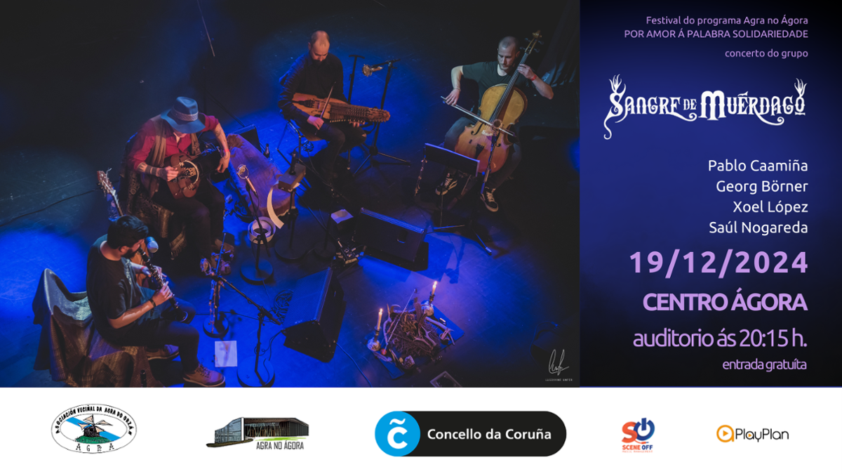 Con numerosas xiras por Europa, norteamérica ou Asia oriental e máis de 15 traballos editados nos últimos 13 anos, Sangre de Muérdago consolídanse como a rara avis da escena musical galega. Acaban de publicar unha nova sesión en directo rexistrada no Mosteiro de Monfero ( https://youtu.be/JaaJd5kGjRU?si=NxwRpKXq9Tqv_9sC ).