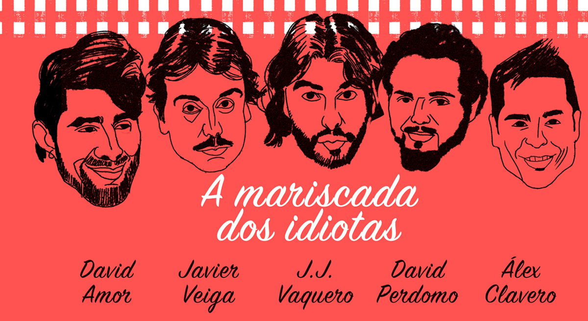 A MARISCADA DOS IDIOTAS é un espectáculo de leóns e tigres pero sen gaiola nin domador. Ou máis ben unha banda de trapecistas que esa noite van traballar sen rede. Porque isto é o que van facer: saír ao escenario e a ver que pasa... Porque David Perdomo, J. J. Vaquero e *Álex Clavero terán que convencer a Javier Veiga e David Amor de que merecen sentar á mesa, e o público será o xuíz. Estamos seguros ao xuntar estes tipos de dúas cousas: a primeira é que o público que se achegue ao Teatro Colón vai rir sen parar durante un par de horas. A segunda é que os que van rir de verdade son os camareiros do restaurante onde vaian cear esta tropa... Pero, iso si, que avisen na casa que van chegar tarde, porque vai ser boa!