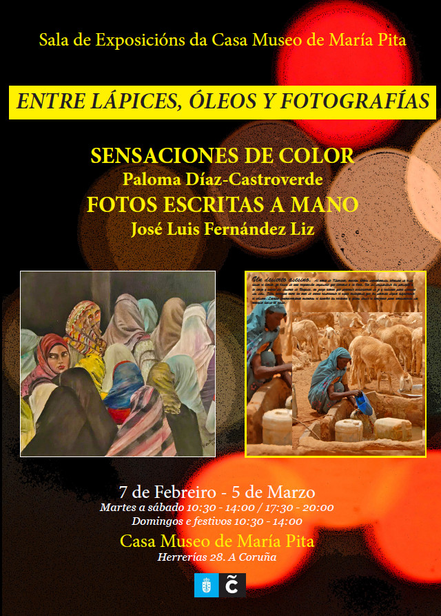 "Las sensaciones de color", un conjunto de óleos de Paloma Diaz-Castroverde en los que traduce a través de su particular lenguaje pictórico diversas situaciones que en diferentes circunstancias le han calado hasta lo más hondo y las "Fotos escritas a mano", una serie de fotografías con texto de José Luis Fernández Liz, en las que el autor plasma gráficamente el resultado de sus conversaciones con las imágenes que un día ha capturado con su cámara".