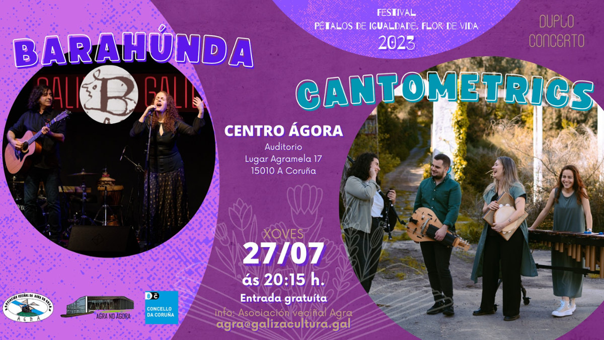 Este duplo concerto, como toda a programación Agra no Ágora, de colaboración entre a Asociación Veciñal Agra e o Concello da Coruña, ten a entrada libre e gratuíta.