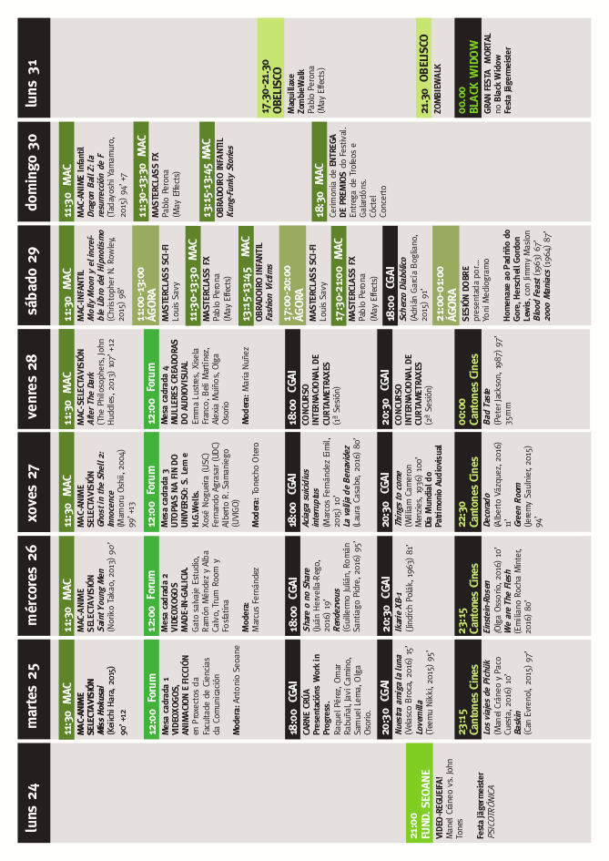 Las calles coruñesas se llenarán de muertos vivientes -la famosa Zombie Walk, en la que siempre hay un conocido técnico de maquillaje dejando su arte en los rostros de la gente que se anima al fiestón-, proyecciones varias de films recientes y clásicos.
