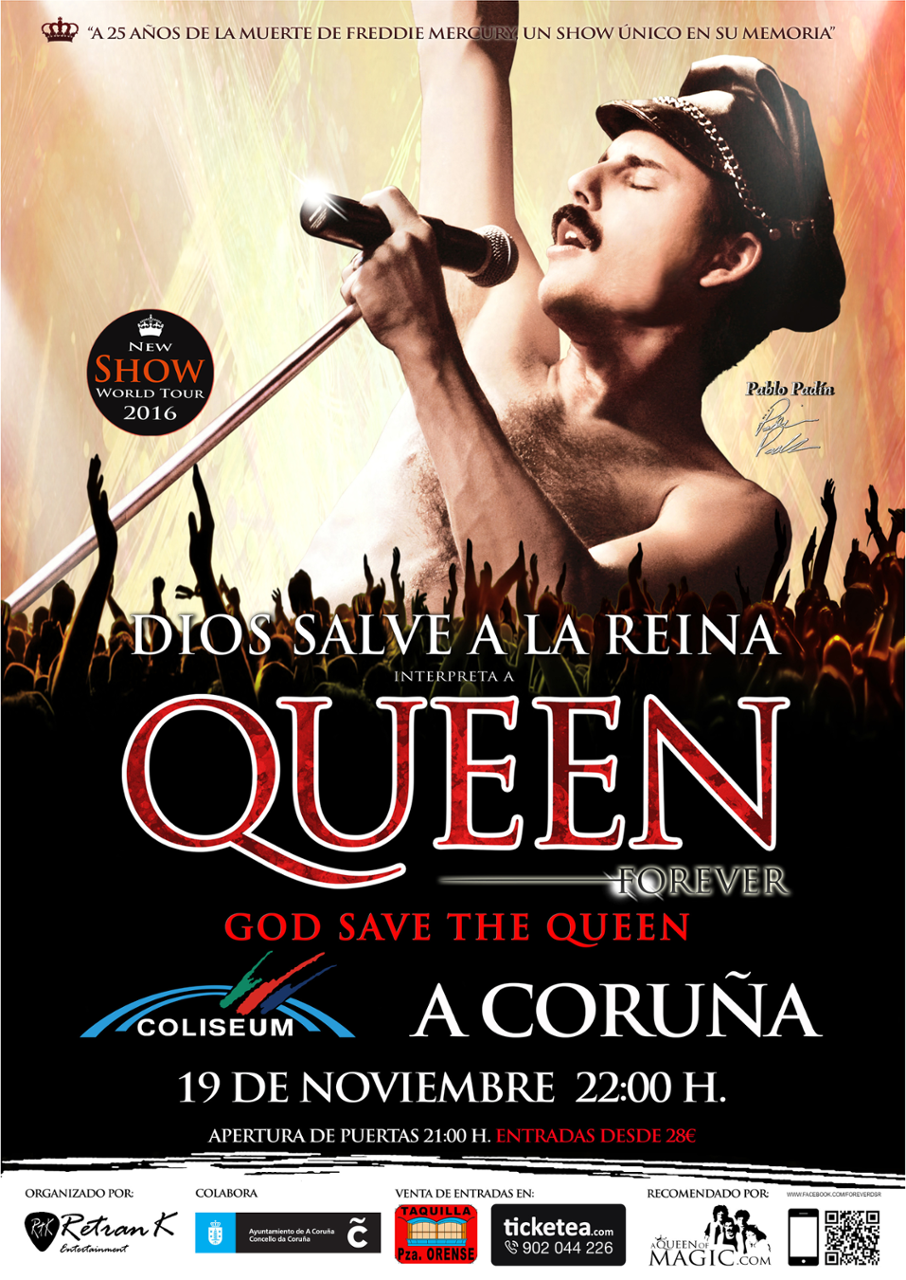 DIOS SALVE A LA REINA - (GOD SAVE THE QUEEN), considerada la mejor banda tributo a Queen del mundo, presentará "QUEEN FOREVER", un recorrido único por la carrera de la icónica agrupación británica y de su famoso vocalista Freddie Mercury.