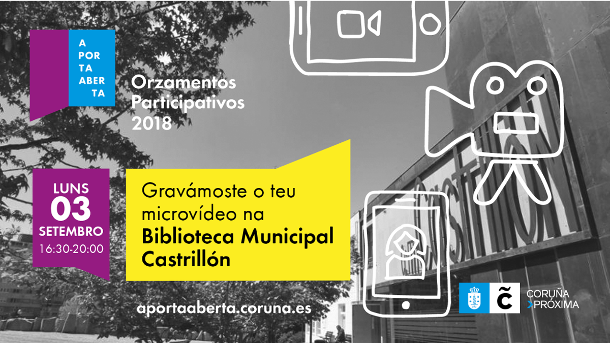 Si te apetece animar a la ciudadanía de A Coruña a que participe votando a tu propuesta o cualquiera que consideres útil o prioritaria, envíanos tu microvídeo a presupostos.participativos@coruna.es o acércate a los puntos de grabación para que te grabemos nosotros. Subiremos todos los vídeos a las redes sociales de la Concellería de Participación e Innovación Democrática