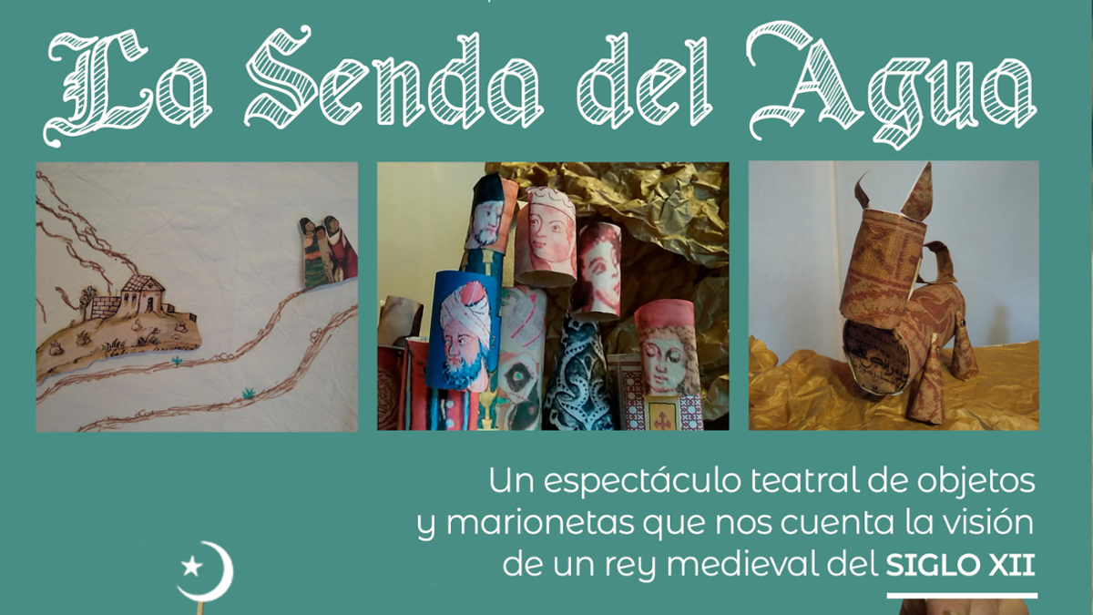En el silencio y soledad del museo, una trabajadora del servicio de limpieza trastea con la maqueta de un castillo que utiliza el personal del museo para "animar" las visitas guiadas. Al quitar el polvo a una vasija escucha una extraña risa... Le ha parecido oír los ronquidos del vigilante dormido en la torre... el relincho del caballo del jinete que se acerca desde la montaña.... escucha... el chapotear de sus propios pies en el suelo del museo...... ¡el rio de la maqueta chorrea agua! El agua, fuente de vida, nos relata la senda que ha recorrido para sustentar la floreciente cultura medieval de la Murcia del "Rey Lobo" del Siglo XII.La senda del agua es la narración de la creación DE UN SISTEMA DE RIEGO Y GESTIÓN DEL AGUA que produjo un gran vergel y el desarrollo en el ámbito político, artístico-cultural y social de un territorio medieval, símbolo del "ENCUENTRO de 3 CULTURAS".La técnica del Pop-up es un maravilloso recurso para desplegar los escenarios medievales del ensueño histórico de nuestra protagonista.