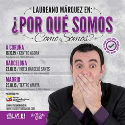 Después del gran éxito de su show "SitDown", Laureano Márquez , el gran humorista venezolano, regresa a España con su nuevo espectáculo "¿Por qué somos como somos?"