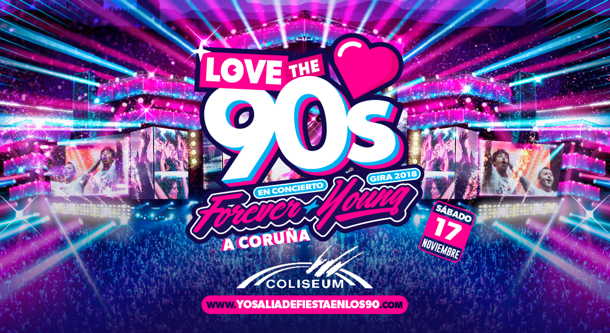 A Coruña vivirá el próximo sábado 17 de noviembre a las 21:00 horas su noche más remembergracias al concierto Love the 90’s, que reunirá en el Coliseum de A Coruña a varios de los mejores artistas nacionales e internacionales del dance de los 90. La apertura de puertas será a las 19:00 horas.
