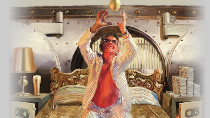 La muestra se compone de una docena de pinturas y tres figuras con forma de huevo, un elemento recurrente en la obra del artista. Los cuadros expuestos están hechos en óleo sobre PET, y en todos se muestra a actores y artistas gallegos encarnando a personajes de la mitología griega y romana -como Prometeo, Hércules o Higía- sobre una cama.