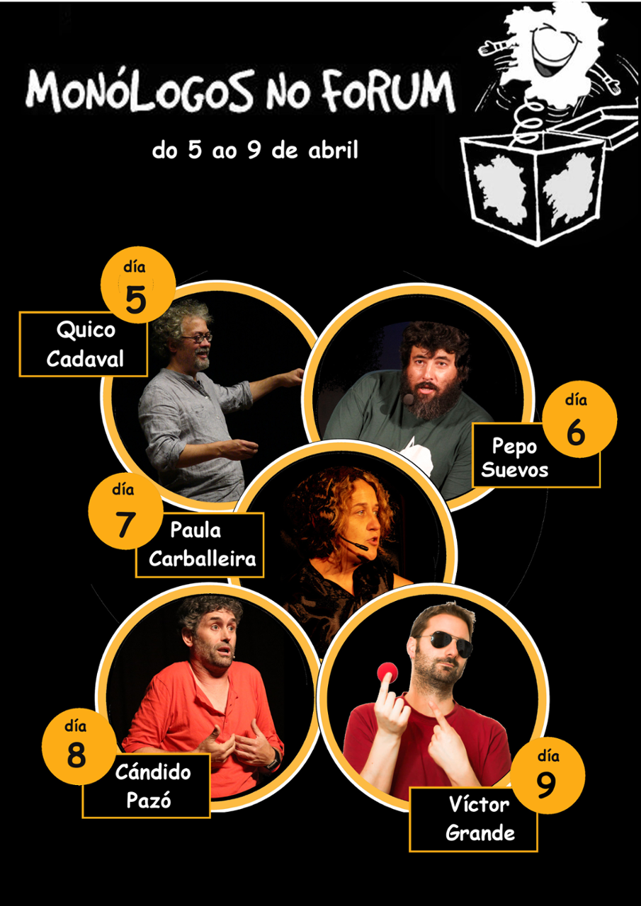 A lo largo de estos 20 años la marca "Monólogos no Fórum" dejó su huella dentro de la intensa programación cultural, convirtiendo al auditorio del Fórum en un improvisado local donde el público puede gozar de los mejores narradores, contadores, cuentistas, humoristas, monologuistas y gladiadores de la palabra de Galicia; además de poder tomarse un café, un agua, una cerveza...
