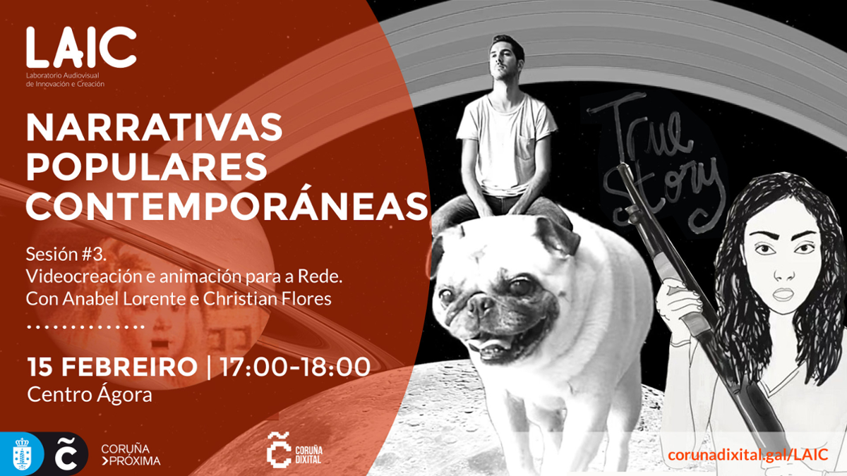 O grupo de narrativas populares contemporáneas do #LAIC celebra a súa terceira sesión cunha conversa aberta con dous referentes da videocreación e a animación na rede, como son Christian Flores e Anabel Lorente.