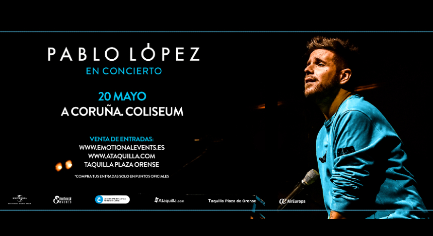 El malagueño acaba publicar las primeras fechas de la nueva gira Pablo López en concierto, con la que regresará a A Coruña de la mano de Emotional Concerts el próximo 20 de mayo. El anuncio de esta nueva gira se ha hecho público pocos días después de que López presentara Quasi el primer adelanto de su inminente nuevo disco. Una delicada y explosiva composición en la que el artista ha apostado por una base electrónica que se fusiona con su infalible piano y se diluye con su desgarradora voz. Sin duda, un exquisito aperitivo musical para todos los seguidores de su música que podrán volver a disfrutar de sus emocionantes directos en la próxima primavera.