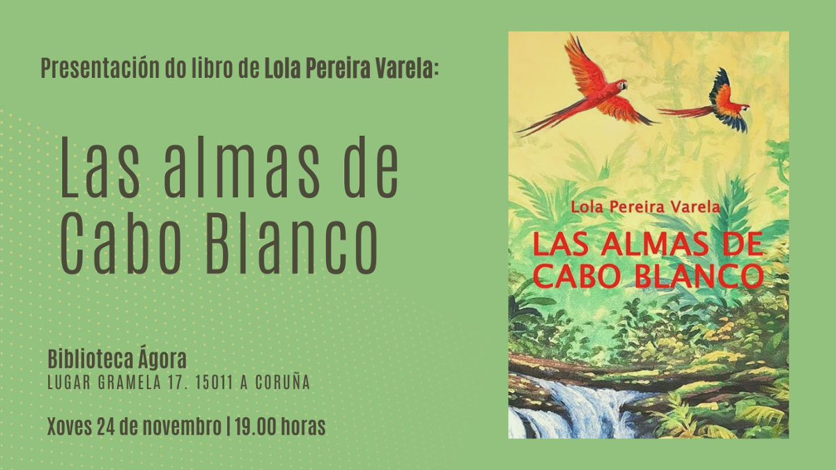 A escritora, docente, conferenciante e ecoloxista Lola Pereira presenta na Biblioteca Ágora o seu novo libro, "Las almas de Cabo Blanco", a historia de como Costa Rica foise convertendo no país ecoloxista que é hoxe e, sobre todo, a historia de Nicolas e de Karen, que loitaron ata o día da súa morte polo ideal do mundo sostible.