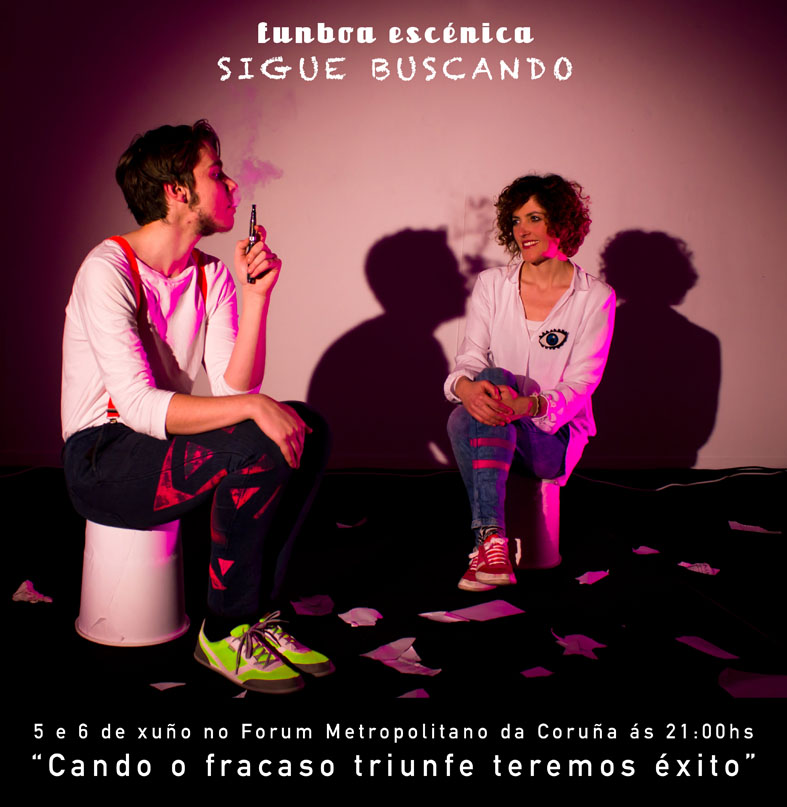 Estevo Añón y Cristina Balboa manejan la iluminación, ponen la música y el vídeo, construyen y modifican el espacio.