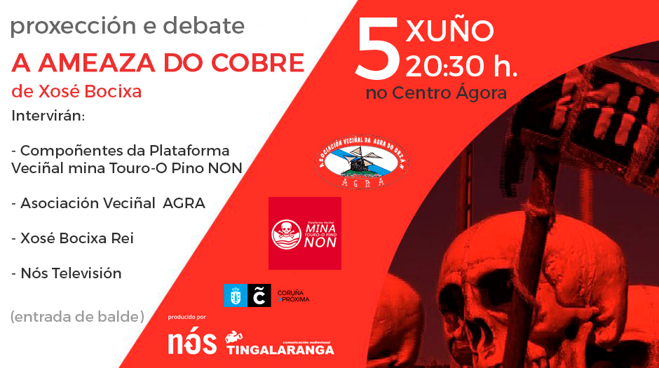 En el día internacional del medio ambiente, la Asociación Vecinal Agra invita a la proyección del documental “A ameaza do cobre” y a un debate, para informar y reflexionar sobre el conflicto de la mina en Touro-O Pino.