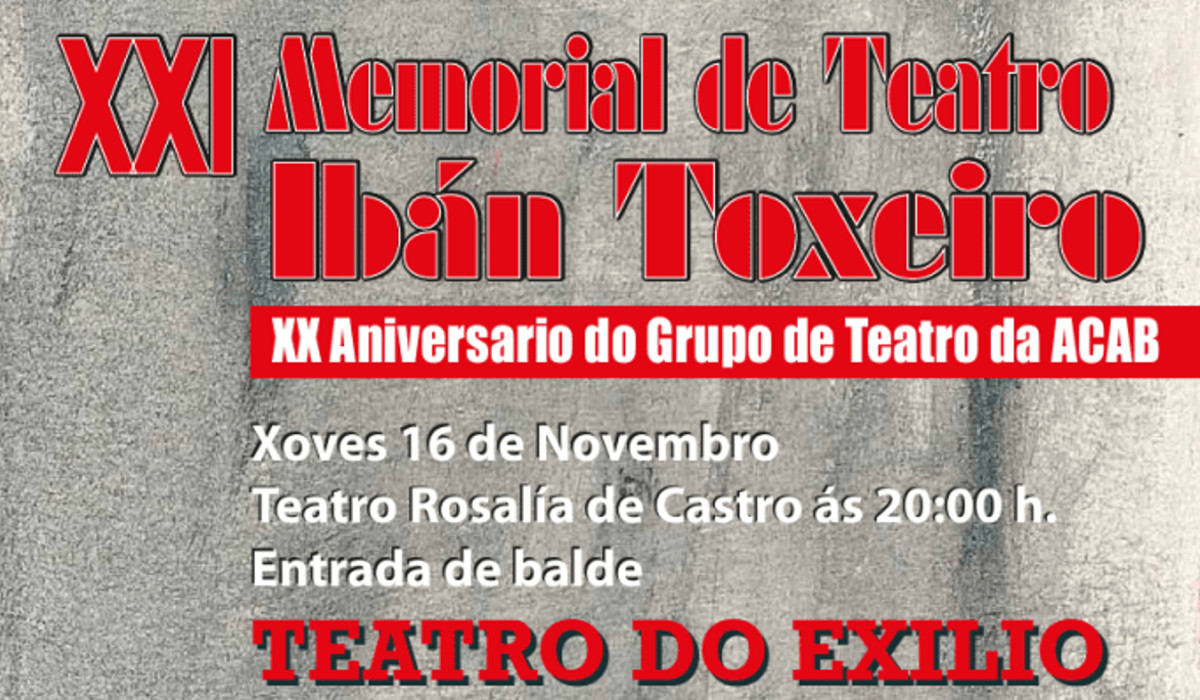 Con motivo de celebrarse el XX aniversario de la creación del Grupo de Teatro de la Asociación Cultural Alexandre Bóveda, pensamos que lo más sensato y acertado sería acudir a nuestros clásicos para conmemorar estos veinte años de escenarios y pasión. Quisimos que el Memorial Ibán Toxeiro de este 2017, llevase a pensar que muchos de los motivos que llevaron a los gallegos y gallegas al exilio y a la emigración aún habitan en nuestro mundo de hoy. Castelao, Dieste y Seoane fueron los escogidos para representar a tantos autores de teatro que vivieron la tristeza de la ausencia de su tierra en sus vidas. Mas, su talento está hoy, aquí, con nosotros, en el Teatro Rosalía de Castro. Estos son los artistas que hacen posible la construcción de nuestro sueño teatral.