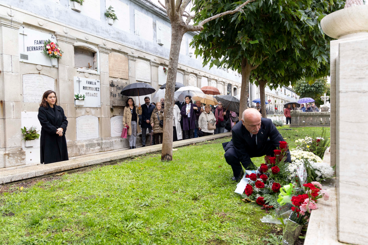 Rey reivindicou o coruñesismo "libre e inconformista" de Luísa Villalta, persoa homenaxeada polo Concello no Día de Todos os Santos. "Os seus versos expresaron con fonda paixón o seu amor á cidade mais tamén unha ansia de rebeldía irrenunciable" explicou. A alcaldesa, acompañada por María Gómez e Susana Villalta, nai e irmá da poeta, deixou un ramo de flores fronte á tumba de Luísa Villalta, figura escollida pola Real Academia Galega para a celebración das Letras Galegas 2024, cando se conmemora o 20 aniversario do seu falecemento.