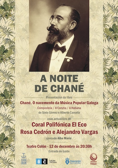 O edil sinalou que esta iniciativa continúa a liña de traballo de colaboración posta en marcha o ano pasado polo Concello de colaboración tanto con aCentral Folque e outras institucións "de cara a reivindicar a figura do compositor", que se fixo efectiva a través do disco Chané na Habana e a súa presentación durante as festas de María Pita en 2017. "A proposta de mañá é un espectáculo máis que recomendable, que nos une ás raíces musicais da propia cidade", apuntou Sande. Así, presentarase a publicación Chané. O nacemento da música popular galega, de Alberto Cancela e Sixto Gómez, unha sorte de biografía que fai un percorrido detallado pola traxectoria do compositor, veciño da Coruña, e inclúe tamén partituras dalgunhas das súas obras. Tal e como explicou Ramón Piñeiro, de aCentral Folque --editora do texto--, "é un inventario fantástico que recupera partituras e pon en valor o traballo dun dos grandes nomes da música galega, infelizmente esquecido durante moitos anos".