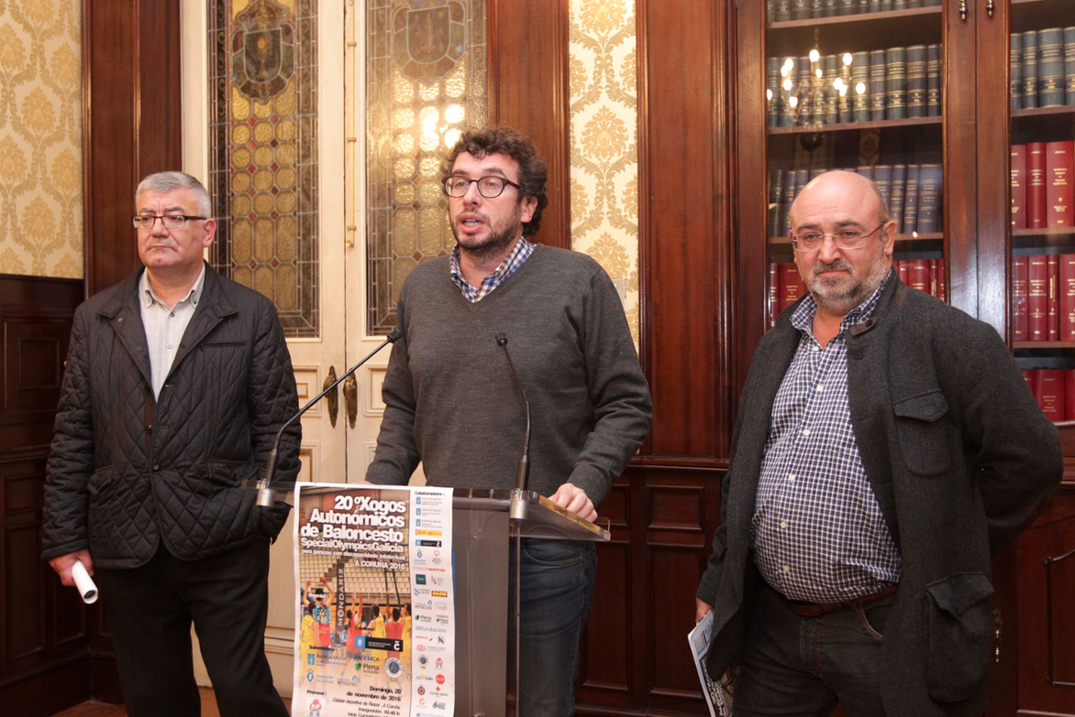 El concejal de Culturas, Deporte e Coñecemento, José Manuel Sande, presentó esta mañana en el Palacio de María Pita la 20ª edición de los Juegos Autonómicos de Baloncesto para personas con discapacidad intelectual, una competición que tendrá lugar este domingo, día 20 de noviembre, en el Palacio de los Deportes de Riazor, y en la que se darán cita 246 deportistas de toda Galicia. El edil saludó la iniciativa, "una propuesta que entiende y apuesta, como el Gobierno local, por el deporte como vehículo de plena integración social". "Esta iniciativa encaja en la línea que se viene desarrollando en los últimos meses, en la que la igualdad es un eje transvesral en la acción de Gobierno y que, en la práctica, se comprueba con la apertura de las carreras Coruña10, Coruña21 y Coruña42 a las y a los atletas con silla de ruedas; la ampliación de actividades y adaptación de ellas en las Escuelas Deportivas Municipales, o el impulso del programa Deporte Solidario e Inclusivo promovido por el Ayuntamiento y Fundación Emalcsa", afirmó Sande, quien destacó el apoyo del ejecutivo coruñés a otras iniciativas a Carrera Alternativa, la II Marcha sobre Ruedas o el proyecto ENKI". "El acceso a la práctica deportiva es un elemento clave para la integración de las personas con diversidad funcional como ciudadanía de pleno derecho", incidió.