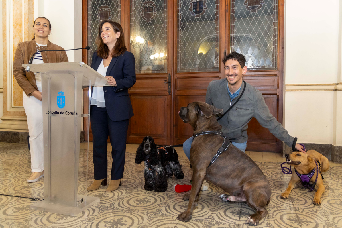 O Concello da Coruña da un paso máis na integración dos animais de compañía na cidade, pasando a contar con sete zonas de uso compartido entre a cidadanía e os cans. A alcaldesa, Inés Rey, presentou esta mañá as novidades, acompañada de Noemí Díaz, concelleira de Medio Ambiente, e Samuel Rodríguez, persoa usuaria e activista polos dereitos dos animais. A alcaldesa agradeceulle o traballo conxunto e a colaboración para a ampliación da rede de áreas de convivencia.