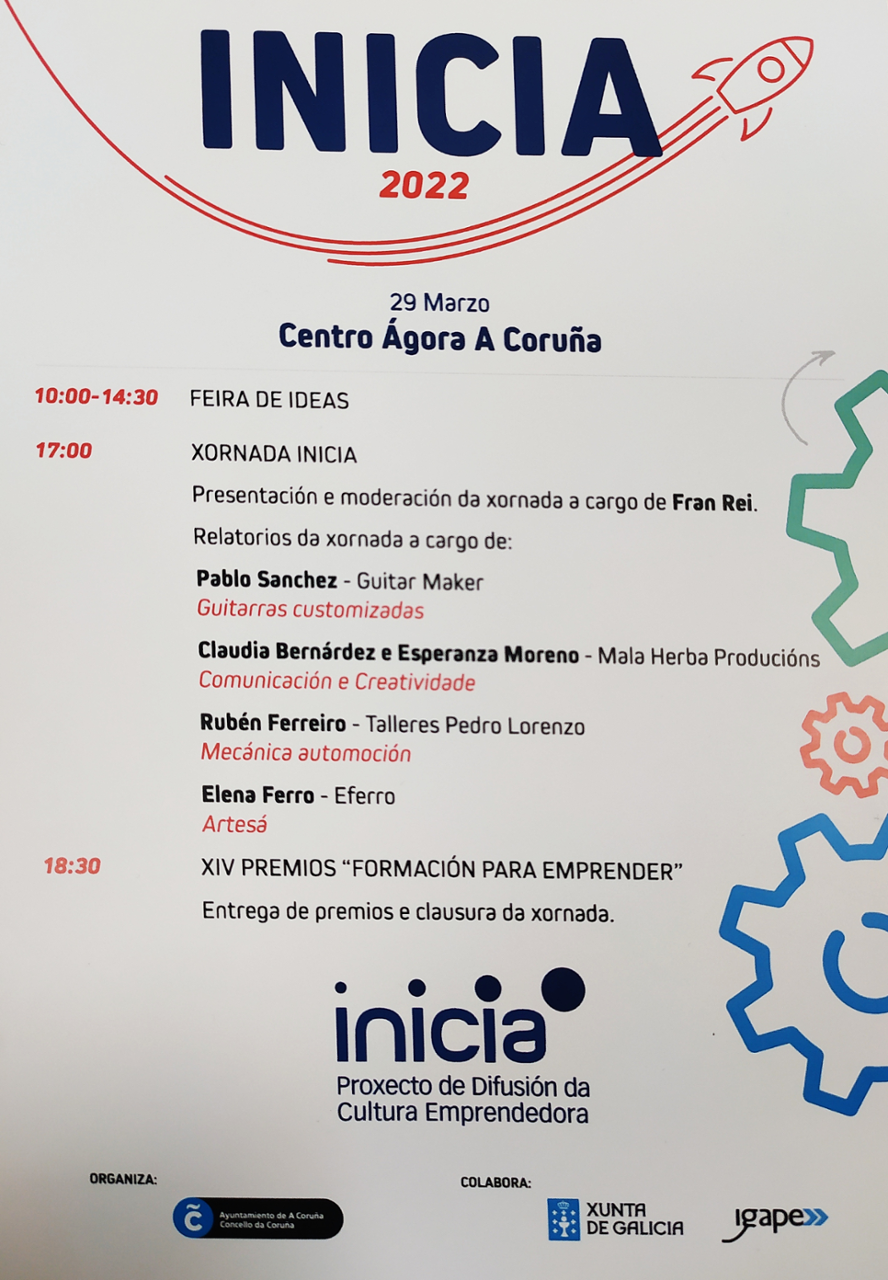O pasado martes 29 de marzo, como parte do Programa Inicia, celebrouse no centro Ágoraunha feira de ideas con participantes de varios centros educativos da Coruña. Cada grupotiña que crear unha empresa e idea de negocio - ou proxecto - para presentala ao público edefendela fronte unha chea de visitantes curiosos/as, que paseaban entre os distintospostos preguntando e indagando sobre a viabilidade e innovación das distintas iniciativas.