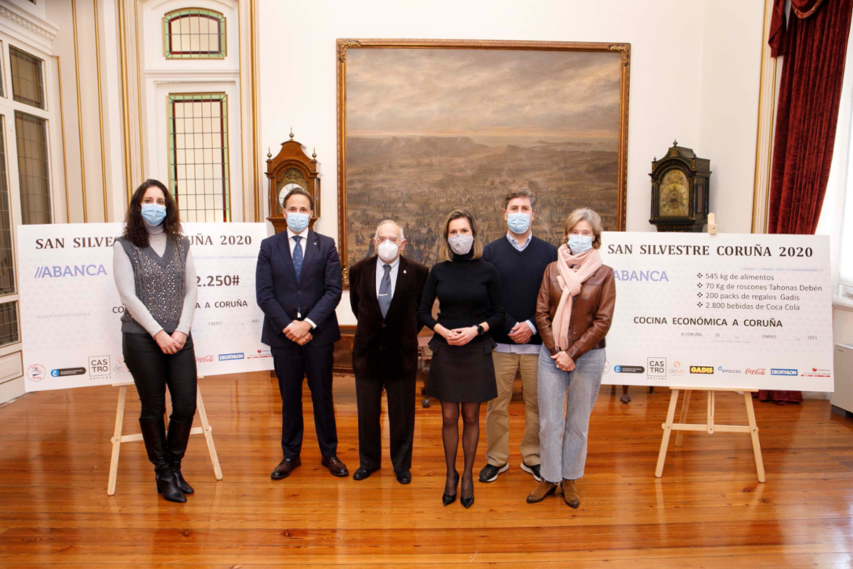 A concelleira de Deportes, Mónica Martínez, entregoulle esta mañá un cheque de 2.250 euros ao presidente da Cociña Económica, Jacinto Torres, para dar así conta do que se recadou este ano na undécima carreira San Silvestre. A edila destacou que, pese ás circunstancias, A Coruña volveunos sorprender até conseguir altas cotas de participación: "Salvando a proba vallecana, a nosa San Silvestre, con 1.850 corredoras/es, foi unha das convocatorias virtuais que logrou unha maior asistencia de público". A edila destacou que, ademais desta cifra, houbo particulares que doaron até 545 quilos de alimentos nestas datas, que se sumaron aos 70 quilos de roscóns de Reis que achegou a firma Tahonas Debén, os 200 paquetes con agasallos que repartiu Gadis e as 2.800 bebidas distribuídas por Coca-Cola.