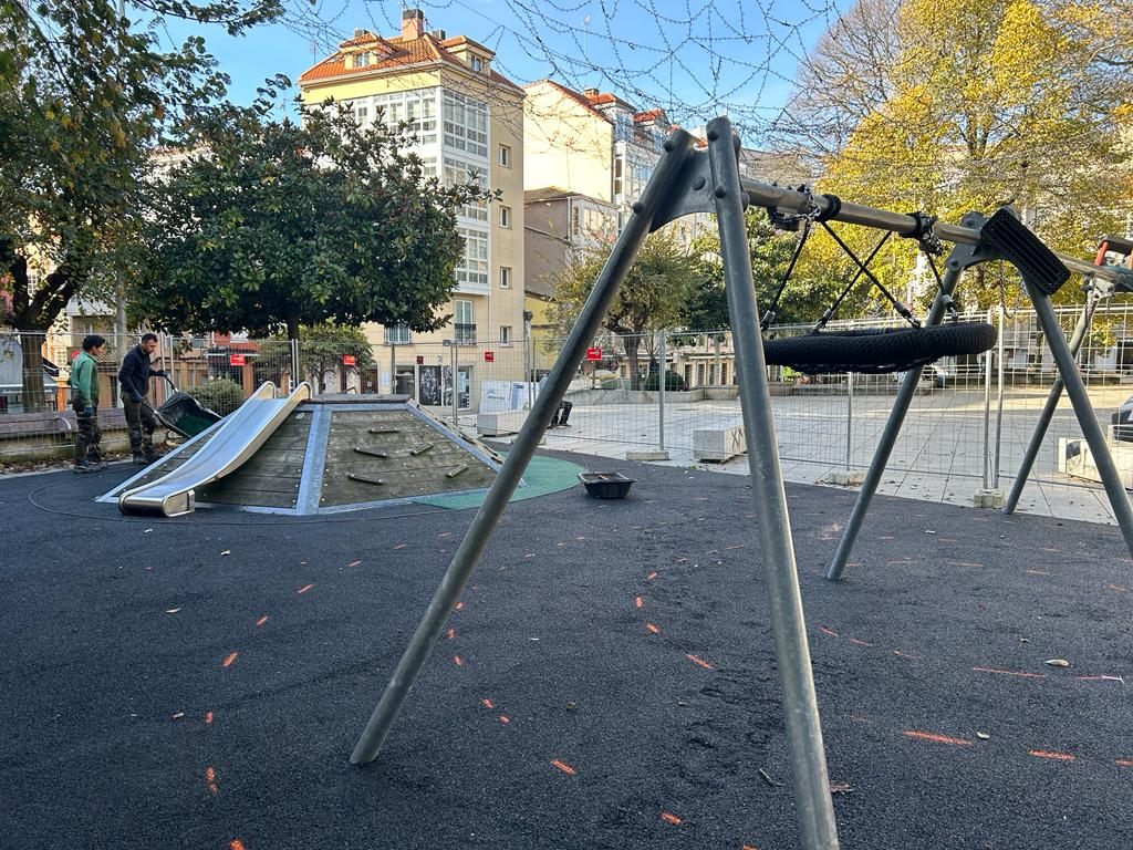 Xa a comezos desta semana, e como paso previo ao inicio das obras, dispúxose o valado perimetral necesario para acoutar as zonas de intervención, localizadas no sector leste da praza. Posteriormente, iniciouse a substitución do pavimento de caucho actual, deterioriado polo paso do tempo e pola súa exposición ás inclemencias meteorolóxicas, co obxectivo de reforzar a seguridade e comodidade das pequenas e pequenos.