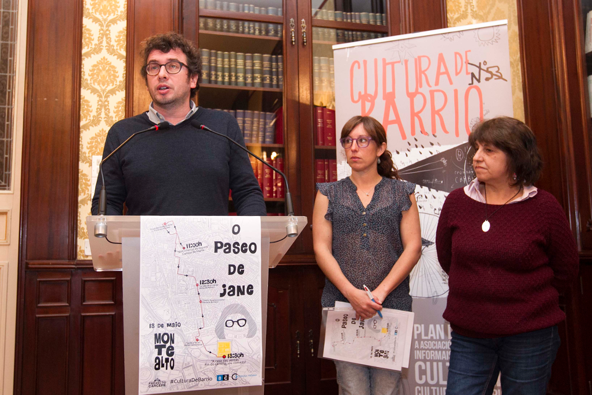 El concejal de Culturas, Deporte e Coñecemento presentó esta mañana un nuevo proyecto de los 17 que forman parte de la primera convocatoria de Cultura de Barrio, el programa municipal de apoyo a entidades y colectivos culturales. O cárcere á rúa, que así se llama la iniciativa, es una propuesta de la entidad Proxecto Cárcere que se desarrollará a través de dos actividades. La primera de ellas, O paseo de Jane, será una ruta por el barrio de Monte Alto que tendrá lugar el próximo sábado, 13 de mayo, desde las 11.00 horas de la mañana, para dar a conocer a la ciudadanía la historia del barrio. "La propuesta de este colectivo encaja perfectamente con el interés de este Gobierno de promover espacios culturales de activación comunitaria, y poner en valor la cercanía, en esta línea en la que trabajamos a través de Coruña Próxima, además de ayudar a la descentralización de la propia programación municipal", destacó el edil.