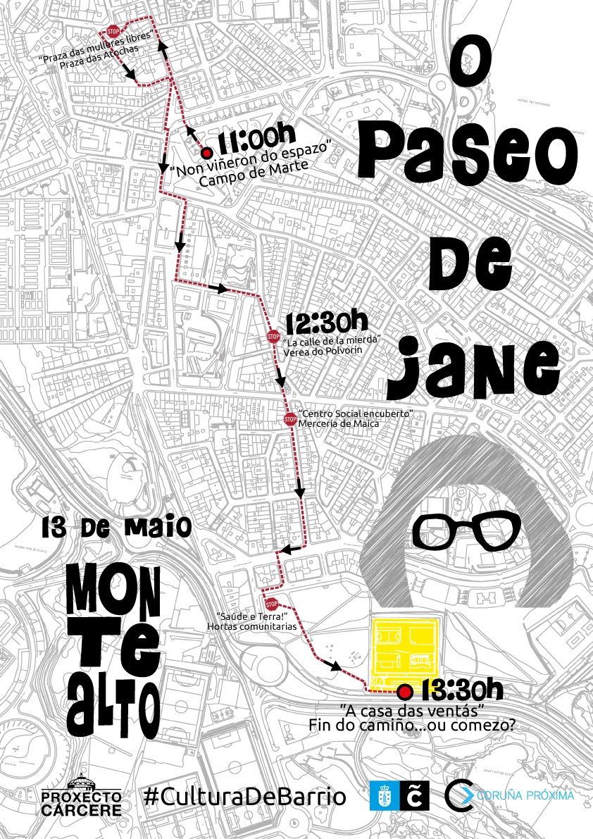 El titular de Culturas explicó que esta primera propuesta de Proxecto Cárcere, "una entidad sociocultural perfectamente integrada en la ciudad y que defiende el uso vecinal de un espacio con el que, hasta hace poco, no se podía contar", tiene como referencia los Jane's Walks canadienses, unos paseos que se celebran desde hace 10 años con el objetivo de celebrar la figura de la activista Jane Jacobs, quien defendía que el vecindario de un lugar "es quien mejor lo conoce". "La idea que presentamos hoy es que sean las vecinas y vecinos de Monte Alto las personas que hablen, a través de una ruta, de su barrio, para poner en valor ese alto grado de conocimiento que tienen de su territorio", señaló Sande.