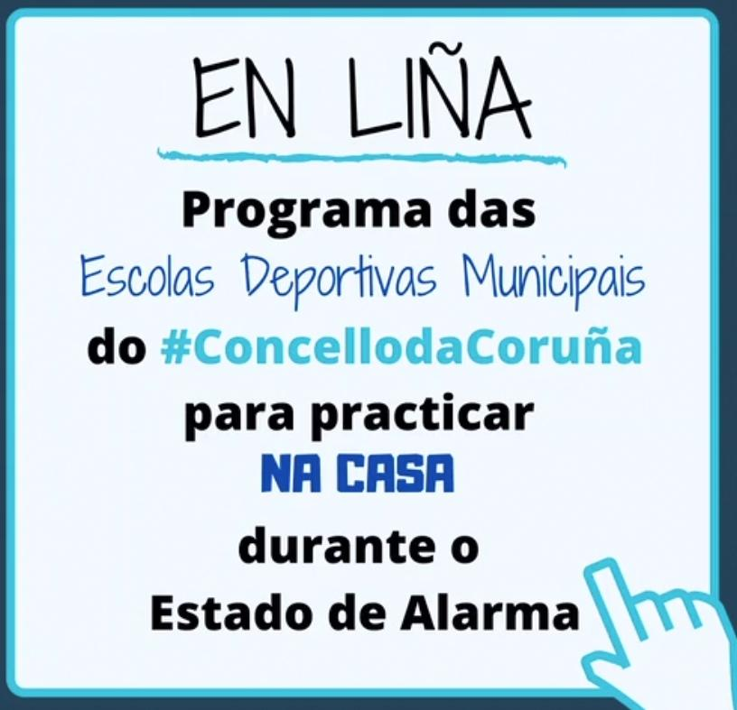 A Concellaría de Deportes retoma o programa #enliña para promover que se desenvolva actividade física durante estas primeiras semanas de febreiro, en que as instalacións deportivas municipais estarán pechadas para a práctica deportiva non federada. Na web do Concello, publicaranse cada día vídeos realizados por monitoras e monitores das escolas deportivas municipais. Todo este material estará dispoñible na canle de Vimeo, do Concello da Coruña: https://vimeo.com/concellocoruna. En total, tratarase de 33 gravacións de mantemento, ioga, pilates e de actividade física orientada especialmente ás idades máis adultas.