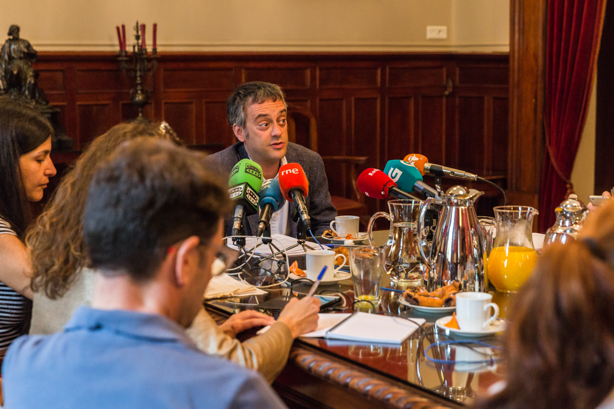 El alcalde de A Coruña, Xulio Ferreiro, destacó esta mañana la priorización de las políticas sociales como uno de los pilares de la acción del gobierno municipal. Lo hizo durante un desayuno informativo que mantuvo con la prensa local en el Palacio de María Pita, y en el que el regidor coruñés calificó como "altísimo" el grado de la ejecución del programa que el gobierno coruñés se comprometió a llevar a cabo en el año 2015. "En justicia social hicimos avances importantes, como la puesta en marcha de la Renta Social Municipal o la firma de convenios para la lucha contra pobreza energética, para que ninguna vecina o vecino quede sin luz o sin agua, al tiempo que también abrimos un centro de baja exigencia o incrementamos el servicio de atención al domicilio", señaló el alcalde, quien también recordó la apuesta por la inversión en la mejora de los centros escolares, así como la implementación de programas de refuerzo educativo o el cambio de tarifas en las matrículas de las escuelas infantiles municipales, que incluyen una tarifa gratuita. "En A Coruña, con este gobierno, cambiaron las prioridades, comenzando por el cuidado de quien más lo precisa. En estos tres años quisimos traer las políticas sociales y educativas a un primer plano e hicimos un esfuerzo económicamente importante en este aspecto", aseveró Ferreiro.