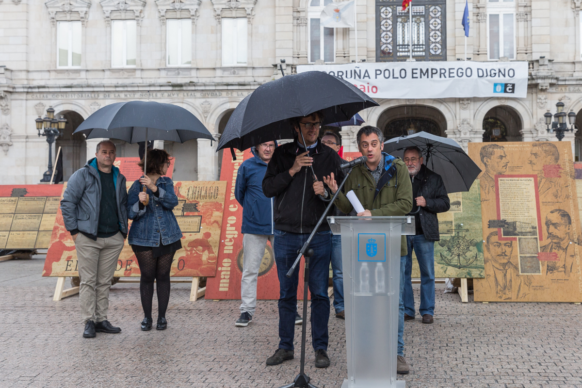 El alcalde de A Coruña, Xulio Ferreiro, reivindicó esta mañana, en la víspera del 1 de mayo, el compromiso del Gobierno local con el reconocimiento y la lucha a favor de los derechos laborales y el empleo digno. El regidor destacó que la efeméride "debe ser día de memoria, pero también de reivindicación". "La defensa de los derechos laborales va mucho más allá de sus palabras, significa luchar por la equidad, igualdad y justicia social", afirmó. "A pesar de las escasas competencias en materia laboral que tienen las administraciones locales, desde el Ayuntamiento de A Coruña trabajamos continuamente para lograr hacer de esta una ciudad de trabajo digno. Por eso activamos una serie de cláusulas sociales en los contratos públicos", explicó Ferreiro, "para favorecer el empleo femenino, la contratación de colectivos vulnerable que tienen más difícil el acceso al mercado de trabajo, y la erradicación de un fenómeno que se está convirtiendo en habitual: el de los trabajadores y de las trabajadoras pobres que, a pesar de tener un empleo, no reciben una remuneración digna".