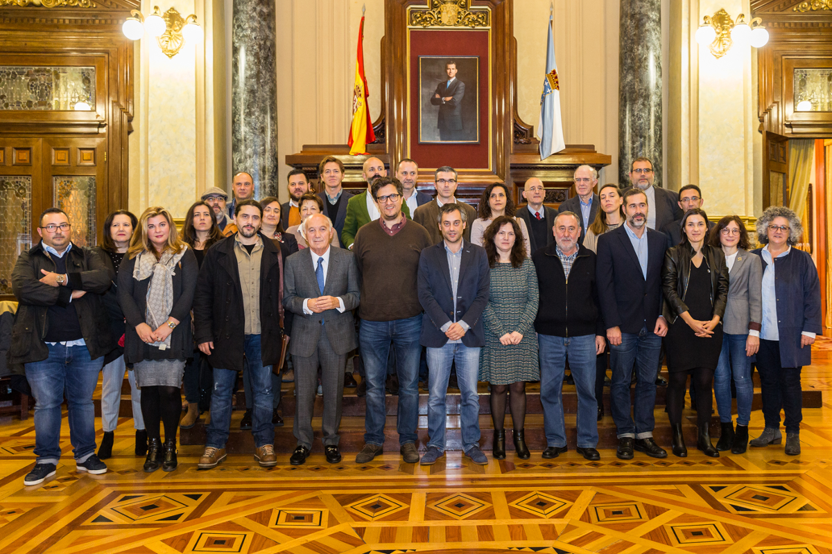 El alcalde de A Coruña, Xulio Ferreiro, firmó hoy con 25 entidades del tejido empresarial y social de la ciudad el acuerdo marco que establece las bases del Pacto Local por el Empleo. Fue en un acto en María Pita en el que, además del concejal de Emprego e Economía social, Alberto Lema, participaron los y las representantes de las asociaciones participantes en esta iniciativa, que busca "promover la mejora de la empleabilidad y la inserción laboral de las personas demandantes de empleo del Ayuntamiento de A Coruña". Tanto la administración local como las instituciones y asociaciones que firmaron este Pacto se comprometen no solo a favorecer un trabajo en red y coordinado con el objetivo de fomentar la actividad económica y, por tanto, la contratación, sino también a facilitar el cumplimiento del Plan Municipal de Empleo, articulado de forma participada entre el gobierno local y los principales actores implicados en el sector.
