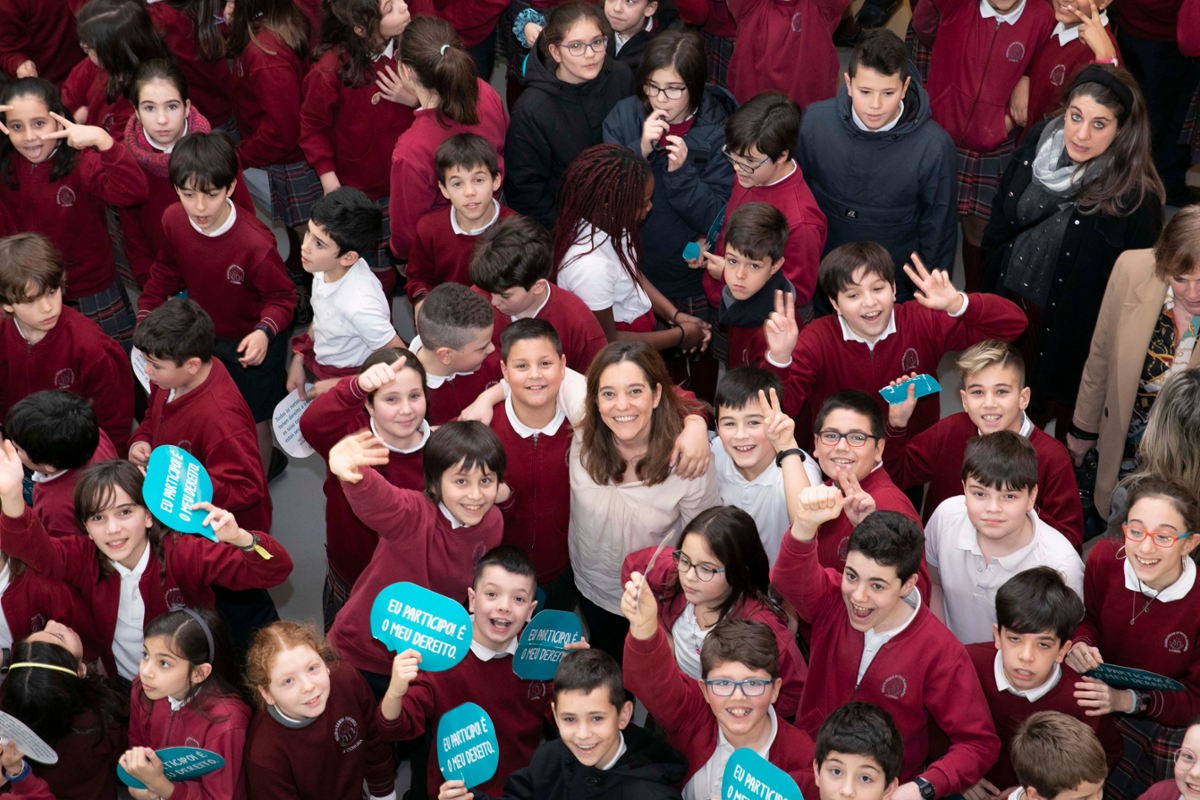 La corporación municipal con la alcaldesa, Inés Rey, a la cabeza, participó esta mañana en el Centro Ágora en un encuentro con el alumnado del CEIP Alborada y el Hogar de Santa Margarita, dentro del proyecto "Sementando participación", promovido por la Fundación Educo y en el que los dos centros trabajaron previamente en talleres los derechos de la infancia y reflexionaron sobre su entorno para compartir hoy sus conclusiones ante la presencia de las personas representantes del Gobierno local. Tras su exposición, la regidora mostró su deseo de que la jornada les prestase "tanto como a nosotros y que hayáis sembrado participación, pero también risas y complicidad, solidaridad colectiva y ganas de comunicar, de hacer llegar y convencer, de mostrar lo que sentís desde vuestra pequeñez porque estáis en vuestro derecho y queremos que así lo ejerzáis durante todo el año".