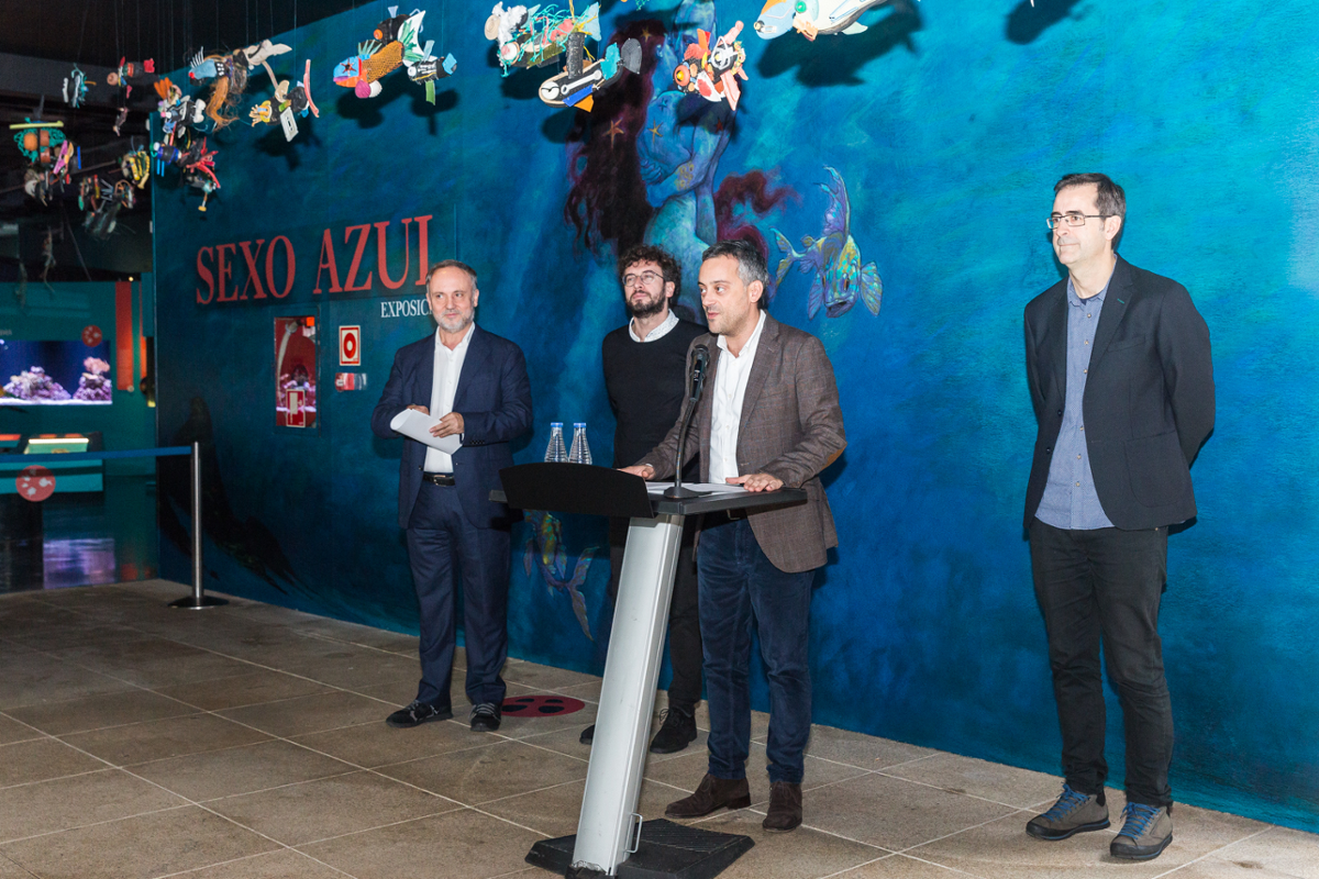 El alcalde, Xulio Ferreiro, participó esta mañana en la inauguración de la nueva exposición del Aquarium Finisterrae, Sexo Azul, y que está dedicada a la reproducción de los seres que viven en el agua. La muestra temporal, que está producida por el equipo de los Museos Científicos en colaboración con entidades y museos, está formada por 20 módulos que explican, a través de la interacción, las diferentes fases y temas relacionados con la reproducción. "La exposición nos ayudará a entender y a profundizar en la íntima relación que tenemos, como seres humanos, con el agua salada. Ya que, como se dice en la muestra, los seres vivos acuáticos inventaron muchas de las soluciones que luego fueron utilizadas polos terrestres para sobrevivir mejor en el planeta", manifestó el regidor en el acto de apertura. Sobre una de ellas, la reproducción sexual que evita que las mutaciones genéticas perniciosas se acumulen generación tras generación, se centra la muestra. En el acto participaron también el concejal de Culturas, Deporte e Coñecemento, José Manuel Sande, concejal de Culturas, el director de los Museos Científicos, Marcos Pérez Maldonado, y el comisario de la exposición y director técnico del Aquarium, Paco Franco.