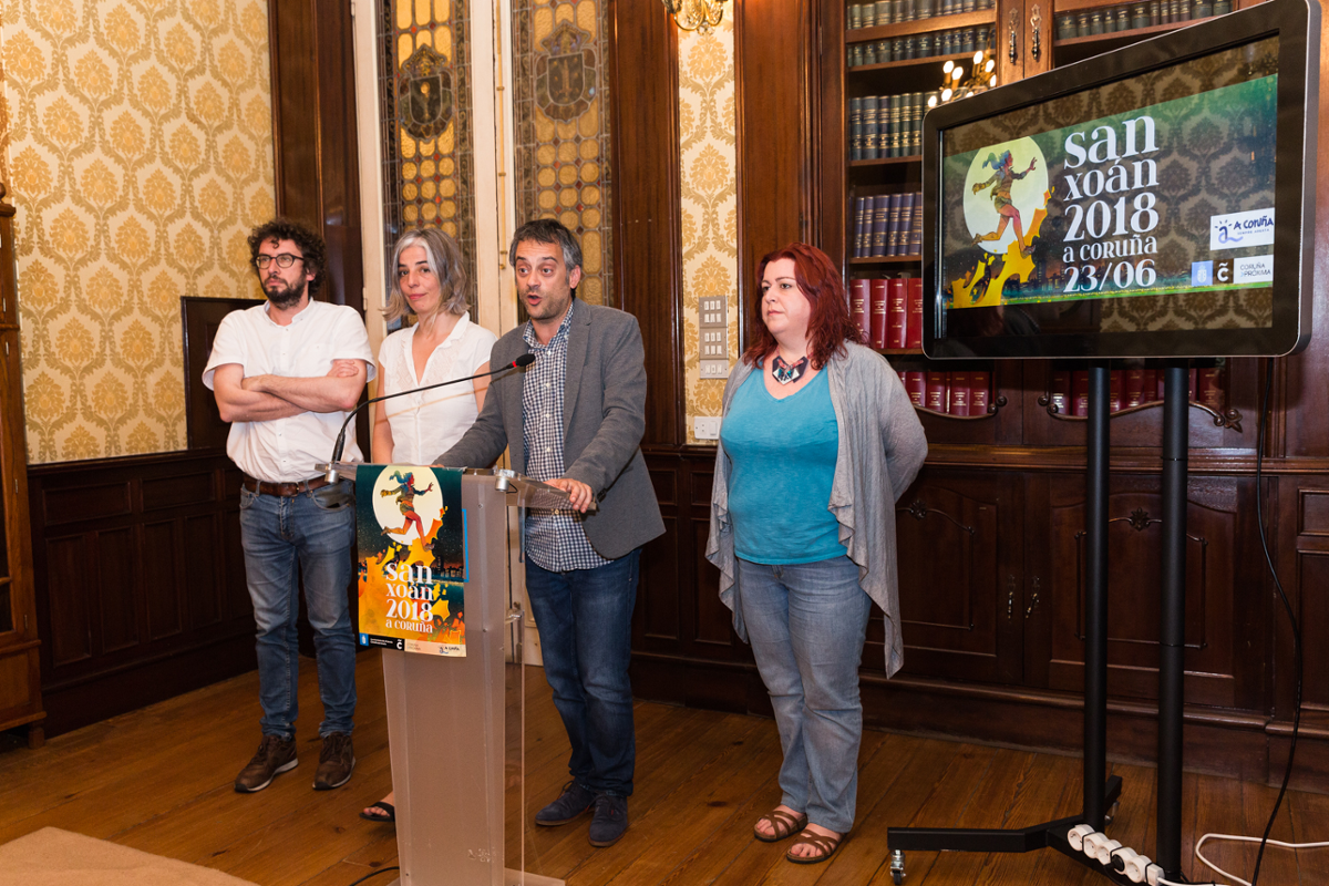 Durante la comparecencia de esta mañana, el alcalde avanzó que serán las jugadoras del equipo de fútbol sala femenino Viaxes Amarelle, que ascendió este año a primera división, las encargadas de encender, sobre la media noche, la falla de la playa de Riazor, que recoge en su diseño el apoyo ciudadano al día 8 de marzo, festivo en la ciudad, la figura de María Pita, las reclamaciones de las personas pensionistas y el Club Deportivo de fútbol. Antes tendrá lugar el espectáculo pirotécnico, que estará en consonancia con la falla y tendrá fuegos de colores morados, azules y blancos. Tras el fuego y la pirotecnia seguirá la actuación de Os Resentidos, que empezará sobre las 00.15 horas para finalizar antes de las 01.30 horas. El Festival Sons de San Xoán, que se celebrará en la explanada de Riazor, comenzará las 20.30 horas, con la banda Ezetaerre, a la que seguirá Bolboreta, el proyecto liderado por Lydia Botana. Después será el turno de Banda Shanghai, que tocará hasta media noche.