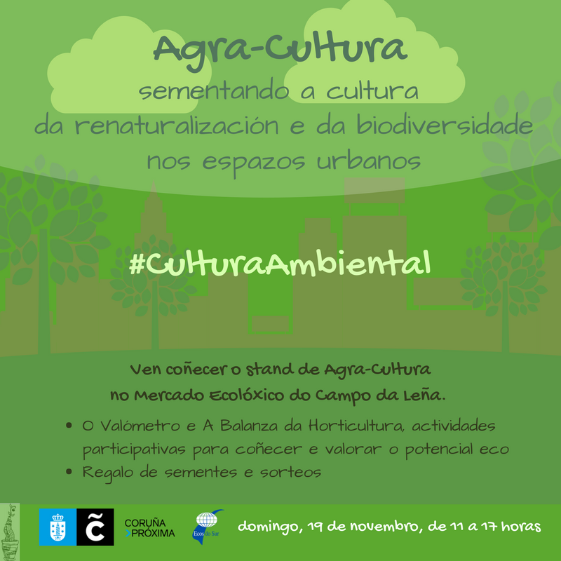 Entre las propuestas que desarrollará Agra-Cultura, destaca Convivencia Verde, que tiene como finalidad impulsar la participación, la colaboración ciudadana y el voluntariado ambiental a través de un encuentro intergeneracional y abierto a la ciudadanía, sobre procesos de naturalización y cultivo ecológico en huertas urbanas. Esta iniciativa se desarrollará mañana domingo, día 19, entre las 11.00 y las 17.00 horas, en el marco del Mercado Ecológico y de cercanías del Campo da Leña promovido por el Área municipal de Emprego e Economía Social. En este contexto se celebrarán, además, distintas dinámicas de sensibilización y puesta en valor de la agricultura ecológica a través de actividades para todos los públicos o del regalo de semillas.