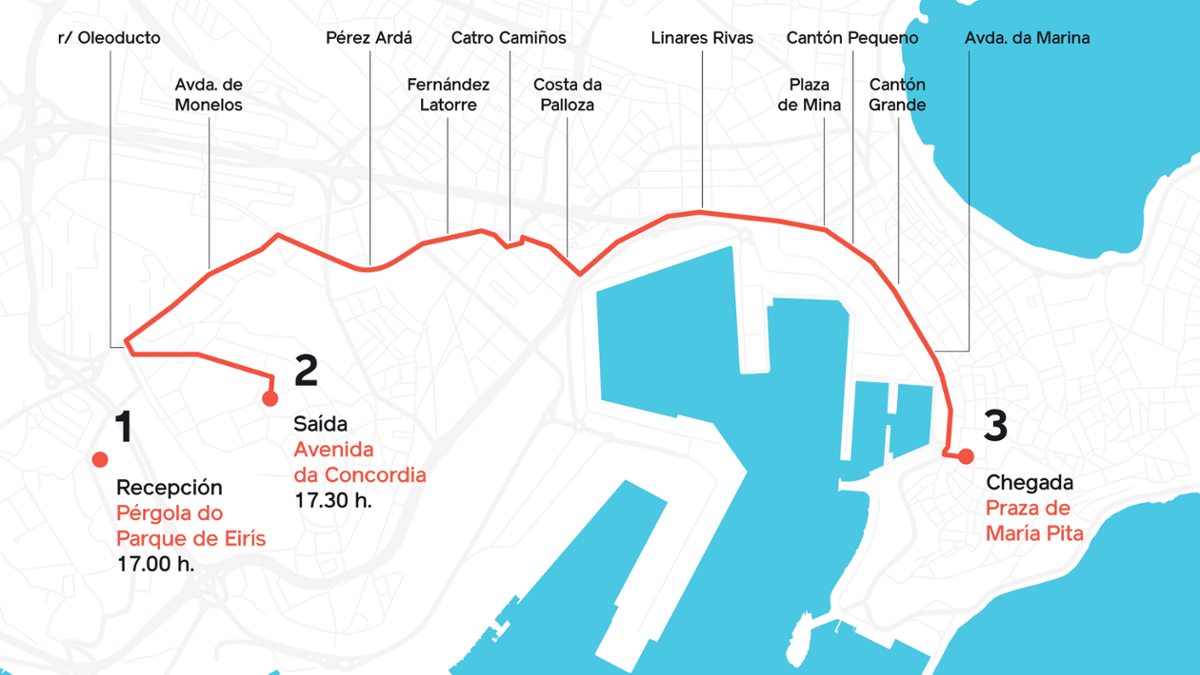 La línea 5, en sentido de circulación hacia la avenida de Hércules, discurrirá desde la glorieta de la Estación de Ferrocarril haciendo un desvío en Pajaritas para incorporarse a Alfonso Molina hasta Federico Tapia, plaza de Pontevedra, San Andrés, Campo da Leña, Veramar, Paseo Marítimo y Abente y Lago, donde recuperará su itinerario habitual. La 21 hará cabeza de línea en Juan Flórez, a la altura del número 10, y continuará por esta vía hasta San Pedro de Mezonzo, Alfonso Molina y Pajaritas, para recuperar en Pablo Picasso su itinerario habitual. Al regreso, desde Pablo Picasso circulará por Alfonso Molina, viaducto, Federico Tapia y Juan Flórez. Las líneas 3 y 7, desde la plaza de Pontevedra continuarán por San Andrés, Rúa Nueva, Paseo Marítimo, Hospital, Campo da Leña, Veramar, Paseo Marítimo y Abente y Lago, donde volverán a su recorrido habitual. La 3A circulará desde el Campo da Leña por Panaderas y San Andrés, para retomar su itinerario a partir de la plaza de Pontevedra.