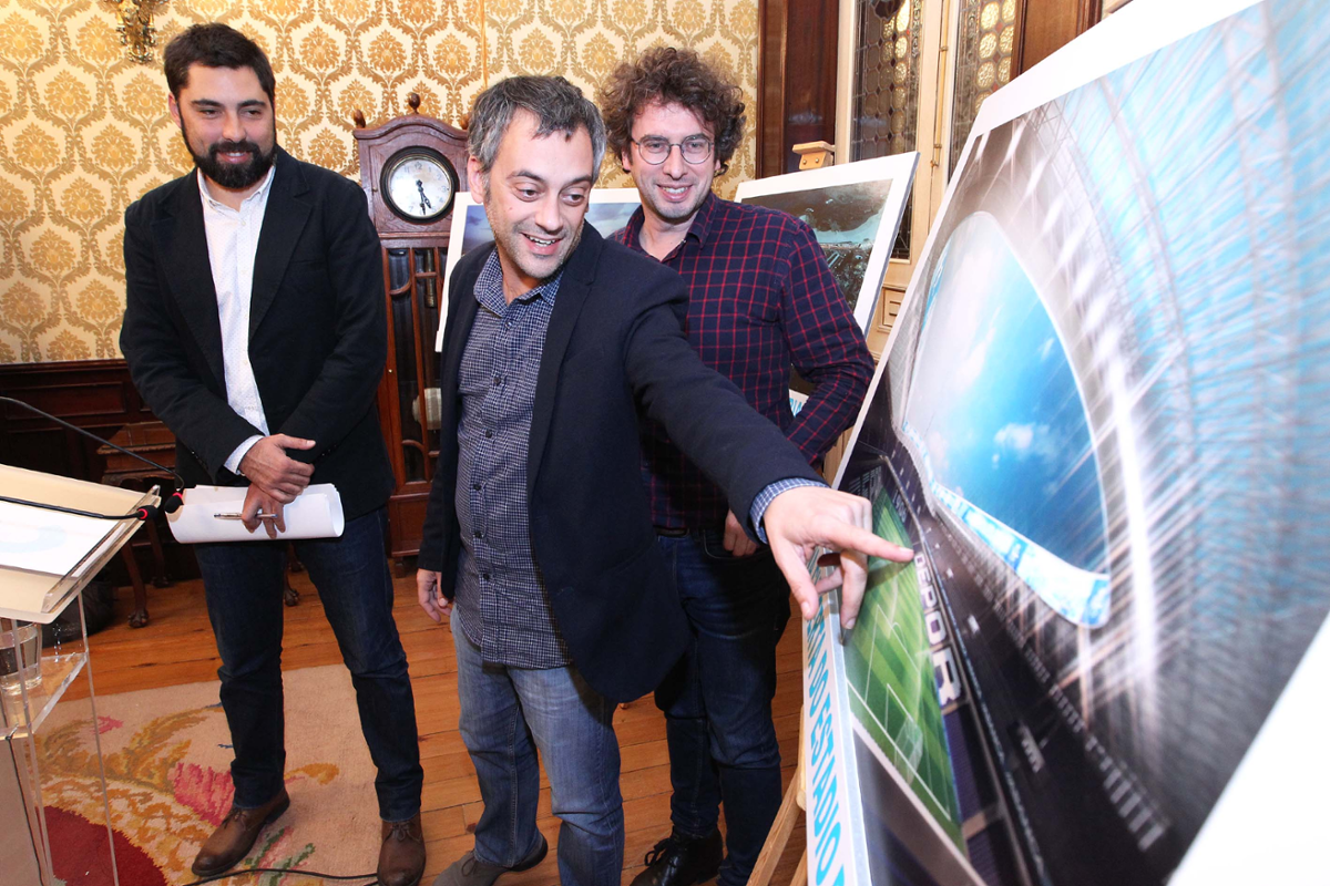 El alcalde de A Coruña, Xulio Ferreiro, y los concejales de Rexeneración Urbana e Dereito á Vivenda, Xiao Varela, y Culturas, Deporte e Coñecemento, José Manuel Sande, presentaron este miércoles la propuesta ganadora para llevar a cabo la redacción y ejecución del proyecto de reforma y conservación de la cubierta y de las estructuras metálicas de las bancadas del estadio de Riazor, una vez que la adjudicación recibió el visto bueno de la Junta de gobierno local, esta misma mañana. La propuesta, adjudicada a la firma Arias Infraestructuras por 7,162 millones de euros, supone, en palabras del primer edil, "una obra más que relevante para la ciudad, porque significa darle una nueva imagen a lo que ya es un edificio icónico, en el que va a ser el estadio del siglo XXI". "El estadio de Riazor es uno de los símbolos de A Coruña y esta obra va a permitir solucionar el problema estructural de las cubiertas, y al mismo tiempo, mejorar una equipación urbana con gran valor funcional que se sitúa en el centro de A Coruña, lo que consideramos que es, frente a otros modelos, un valor que servirá para proyectar la imagen de la ciudad en el exterior".