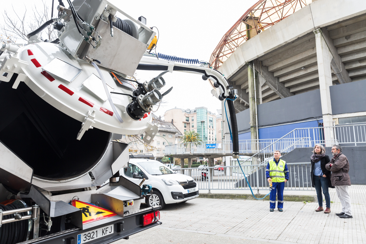 El gobierno local ha incorporado un nuevo camión a la flota de medios municipales que se emplean en la limpieza y mantenimiento del alcantarillado. El vehículo, en el que se invirtieron más de 230.000 euros, está dotado de los últimos avances tecnológicos del sector así, como de seguridad para el personal operario del mismo, y sustituye a uno de menor capacidad. Así, desde hoy, el Ayuntamiento cuenta con cuatro vehículos hidrolimpiadores que tienen la capacidad de transportar 12 metros cúbicos mediante dos depósitos, uno de 7 para lodos, y otro de 5 para agua limpia, "para mantener en perfecto estado los conductos subterráneos", señala la responsable de Medio Ambiente, María García. Tal y como destaca la edil, el alcantarillado de A Coruña, que cuenta con 537,50 km de tubería, recibe todos los residuos industriales y de los domicilios localizados en el término municipal, en un recorrido que cuenta con 21.000 pozos de registro, 15.000 alcantarillado de pluviales y 20 instalaciones de bombeo. Segundo subraya la titular de Medio Ambiente, el Ayuntamiento retira, con sus propios medios, "alrededor de 400 toneladas anuales de residuos sólidos al año", que se llevan al gestor autorizado para su tratamiento, "y que se suman a los que se deben gestionar por la estación depuradora de Bens, que se aproximan a las 900 toneladas anuales".