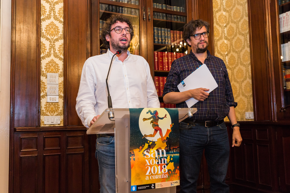 Los ediles José Manuel Sande y Alberto Lema presentaron las actividades lúdicas de la fiesta, cuyo cartel es obra del dibujante David Rubín, “referente que da continuidad a la línea de visibilizar a las y los artistas que forman parte de A Coruña Gráfica”