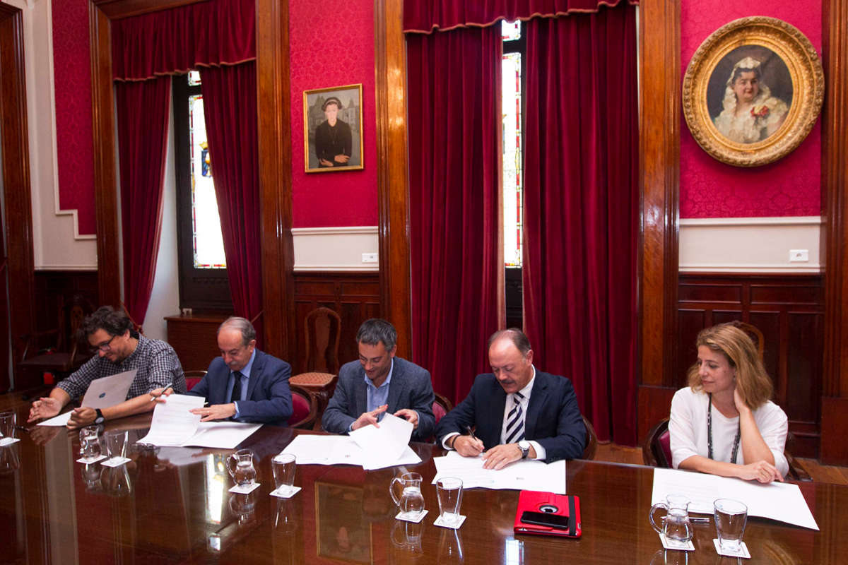 El alcalde participó esta mañana en la firma del acuerdo, que regula la colaboración de las tres partes en actividades que "refuercen la imagen de A Coruña" durante este año