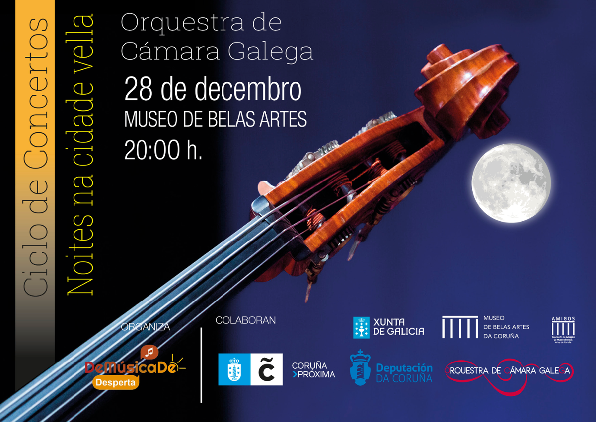 El Museo de Bellas Artes albergará este jueves, día 28, a las 20.00 horas, el último concierto del ciclo Noites da Cidade Vella, que organiza la asociación Demusicade con la colaboración de la Concellería de Culturas, Deporte e Coñecemento, una iniciativa que, como indica el responsable municipal de este área, se dirige a difundir y ampliar el conocimiento musical en espacios artísticos y que cuenta con la participación de la Orquesta de Cámara Galega. Como también hace notar el concejal, el ciclo, que este año celebra su primera edición y que cuenta con financiación municipal, busca asimismo vincular la Ciudad Vieja con la música clásica a través de diferentes espacios como fueron el palacio de Capitanía General y la iglesia conventual de los Dominicos, sede de las anteriores citas del programa, o este Museo de Bellas Artes, donde tendrá lugar la clausura. Del mismo modo, la actividad busca contribuir a la dinamización de esta zona de la ciudad, de su arquitectura y de sus valores patrimoniales, a través de actividades culturales gratuitas y cercanas a la ciudadanía.