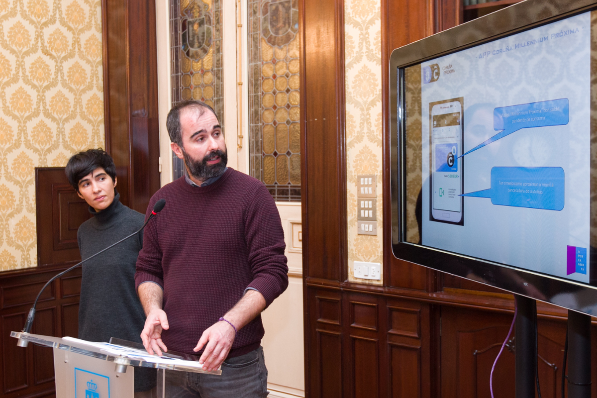 La tarjeta Millennium llegará a los dispositivos móviles en el mes de marzo. La edil de Participación e Innovación Democrática, Claudia Delso, y el concejal de Mobilidade Sostible, Daniel Díaz Grandío, presentaron esta mañana el proyecto Coruña Millennium Próxima, una aplicación que permitirá que el vecindario pueda efectuar el pago en el servicio de transporte público urbano, así como el recargo de la tarjeta monedero municipal, desde su propio teléfono móvil. La iniciativa, tal y como explicó la concejala, propone agilizar el sistema de pago en el autobús, además de ayudar a aumentar la velocidad comercial del transporte público y la atención de la administración a la ciudadanía desde una perspectiva "acorde a los tiempos, más eficiente, ágil y tecnológica ".