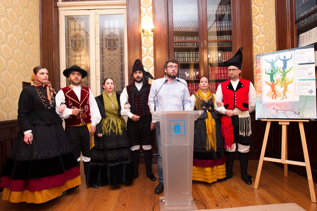 El concejal de Culturas, Deporte e Coñecemento, José Manuel Sande, presentó esta mañana las actividades que tendrán lugar con motivo del Día de la Danza 2017, el 29 de abril. En esta ocasión, y con el objetivo de "ahondar en su compromiso tanto con el mundo tradicional como con la propia danza", señaló el edil, el Gobierno local prolongará la celebración de la efeméride y ofrecerá una programación, organizada en colaboración con tres entidades de música y baile tradicional locales, que se extenderá por las calles de la ciudad desde el viernes, 28 de abril, hasta el domingo 30. Así, las asociaciones culturales Donaire, Son d'aquí y Xacarandaina ofrecerán al vivo una antología de su trabajo a través de tres pasacalles que recorrerán las calles y plazas de A Coruña, hasta llegar a la plaza de María Pita, en las tardes del próximo fin de semana. "Este año queremos poner en valor el baile tradicional y darle protagonismo en esta efeméride", señaló Sande, quien recordó que, en la pasada edición, los festejos estuvieron vinculados a experiencias comunitarias" a través de la programación especial de danza contemporánea que el Teatro Rosalía Castro ofrece en el ciclo TRC Danza. "Este Gobierno tiene el firme compromiso de dotar de más presencia a las artes del movimiento en la programación municipal más allá de esta celebración, como así demuestra el impulso en otoño del festival Quincegotas, el apoyo al ciclo TRC y su programación expandida o la creación del proyecto Ardelloeixo, que llevó el baile y la música tradicional a los barrios con gran aceptación por parte del vecindario", explicó el edil.