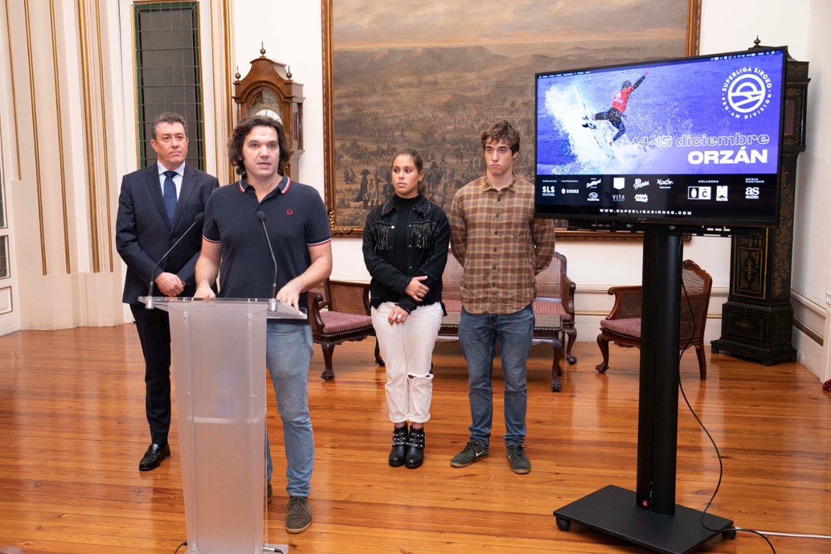 Esta mañá presentouse no Pazo Municipal de María Pita a SuperLiga Siroko de Surf Profesional que terá lugar este sábado e domingo na praia do Matadoiro da Coruña. No acto de presentación do campionato participaron o concelleiro de Deportes, Juan Ignacio Borrego, o director da SuperLiga Siroko, Lucas Altamira, a surfista local que representa a Galicia, Isabel Gundín, e o surfista local que tamén representa a nosa comunidade autónoma, Martín Cortijo.