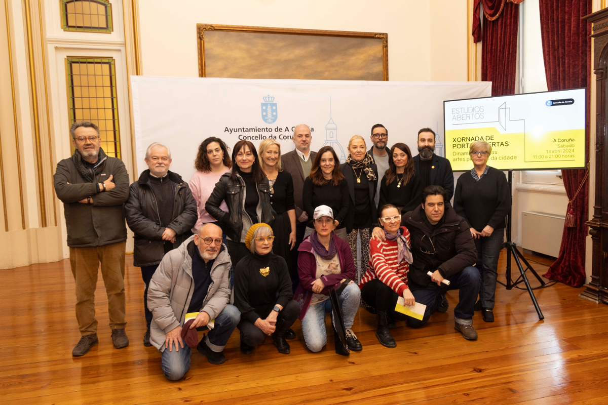 O Concello da Coruña organiza un ano máis a xornada de portas abertas Estudios Abertos, na que este ano participarán un total de 35 espazos da cidade. O evento cultural foi presentado esta mañá pola alcaldesa, Inés Rey, que estivo acompañada polo concelleiro da Área de Fomento e Promoción da Cidade, Gonzalo Castro, e Luisa Valdés e Gosia Trebacz, en representación dos artistas, ademais de outros moitos titulares dos espazos participantes.