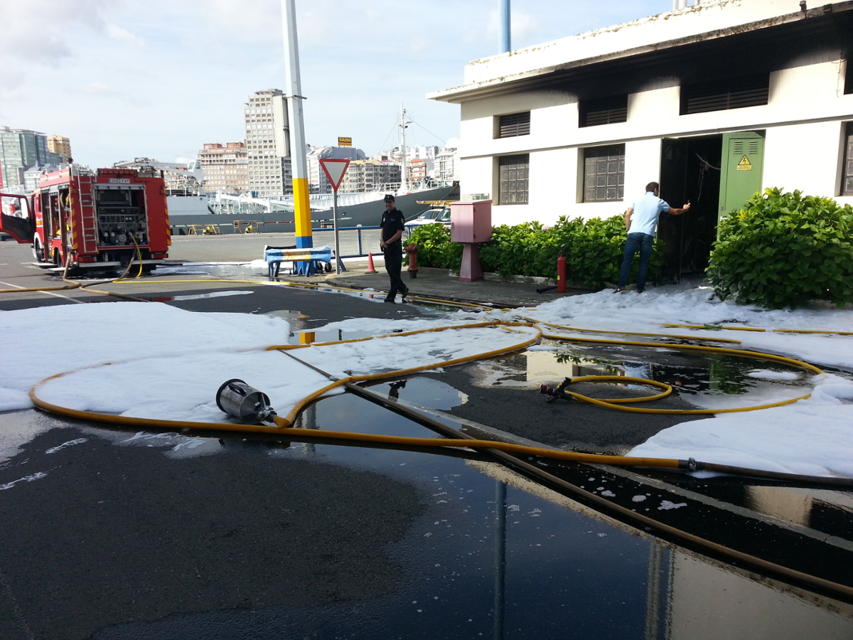 Los bomberos de A Grela se desplazaron a primera hora de la mañana de este domingo, 5 de julio, al muelle de Calvo Sotelo debido a un incendio declarado en una pequeña edificación que contiene transformadores que dan servicio al propio muelle.